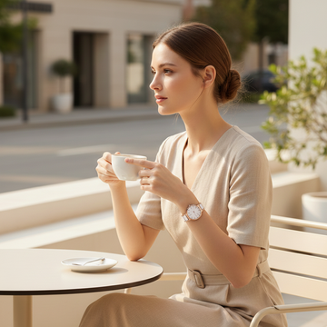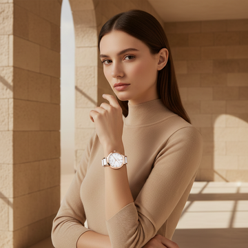 Soft rose-gold tones meet a clean, refined dial, creating a feminine presence that feels elegant, discreet, and unmistakably refined.